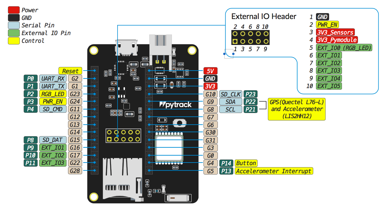 The pinout of the Pytrack is available as a PDF document.