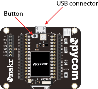 Some devices, such as the LoPy, will cover the USB connector. This is normal; remember to keep the orientation as shown in the image above.