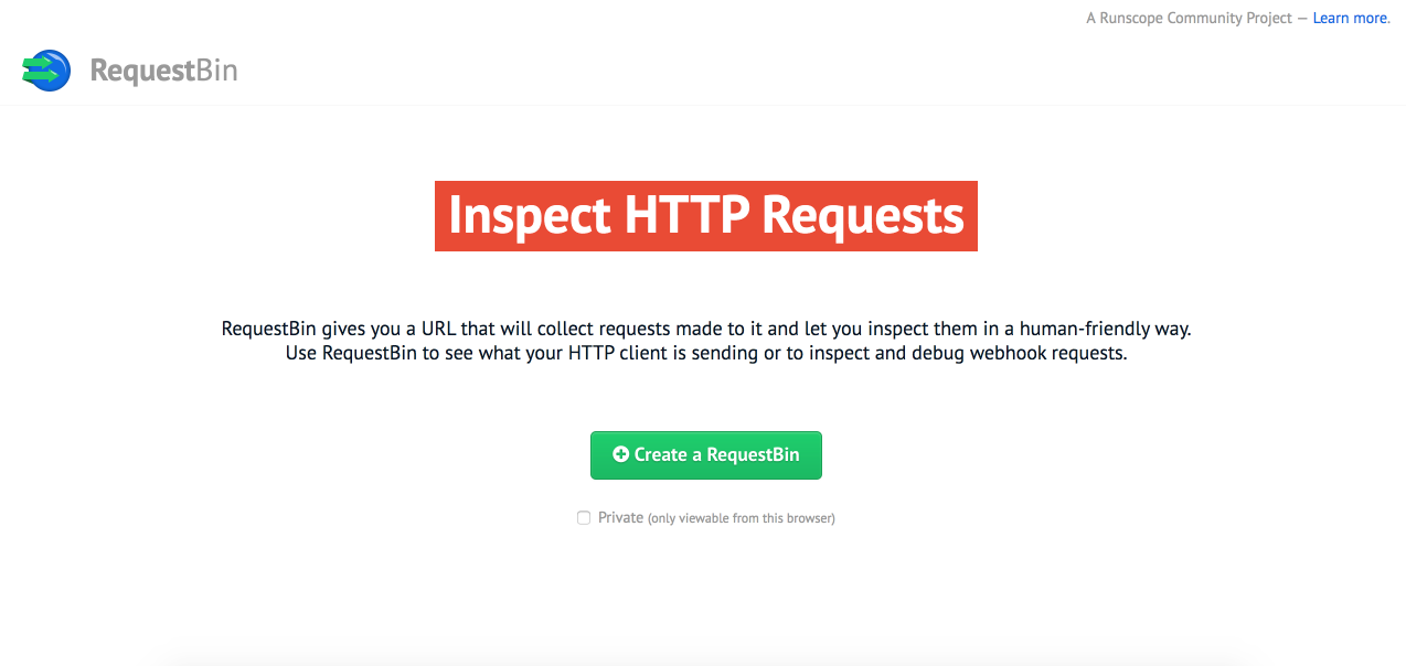 For testing, a website called RequestBin may be used to receive the data that TTN forwards (via POST Request). To set this up, navigate to RequestBin and click the Create a RequestBin.